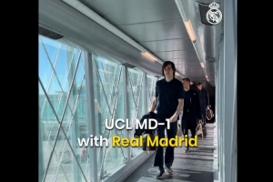 皇马官推晒曼市第一天:出发→抵达→赛前发布会→赛前训练